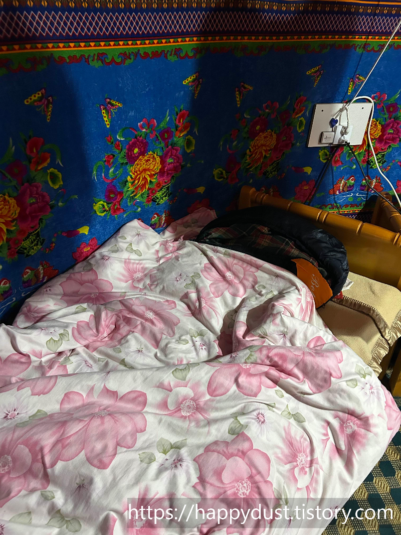 침낭 위에 이불까지 덮으면 춥지않게 잘 수 있다