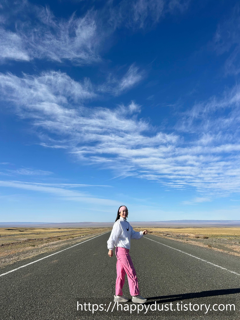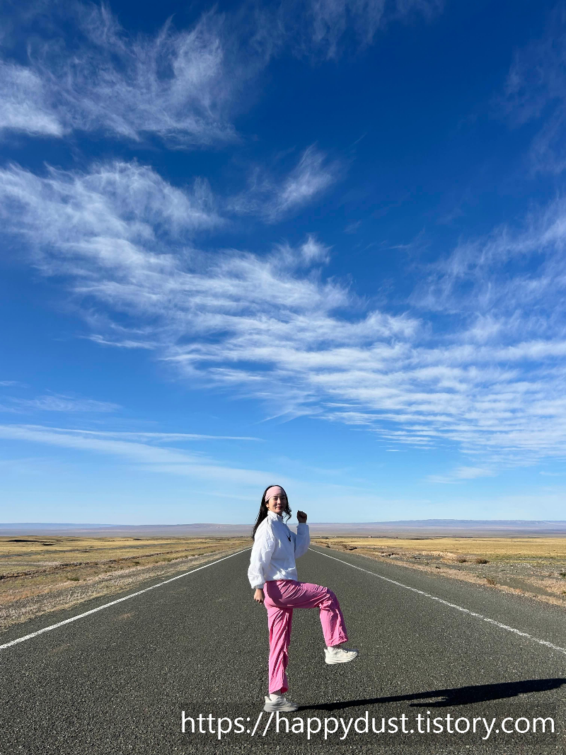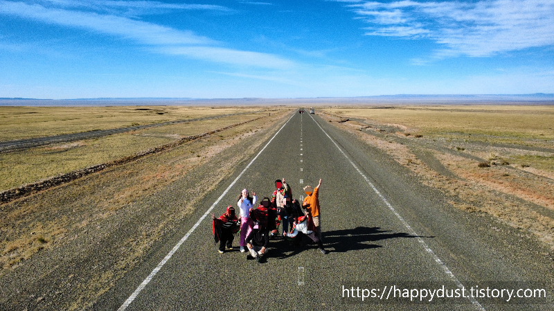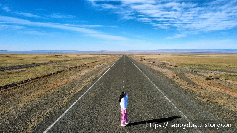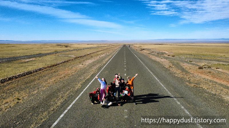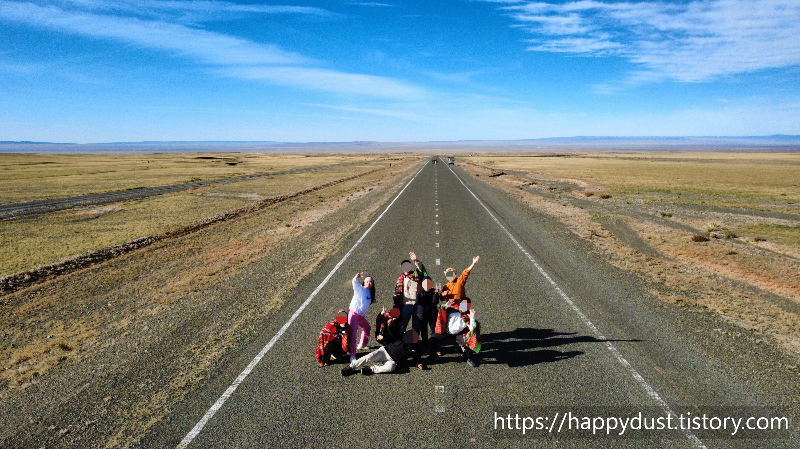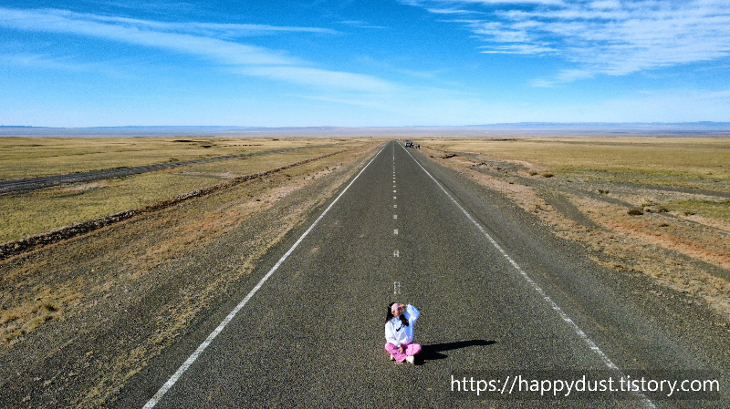 몽골의 도로에서 멋진 사진 찍고 다시 달리고 달려
