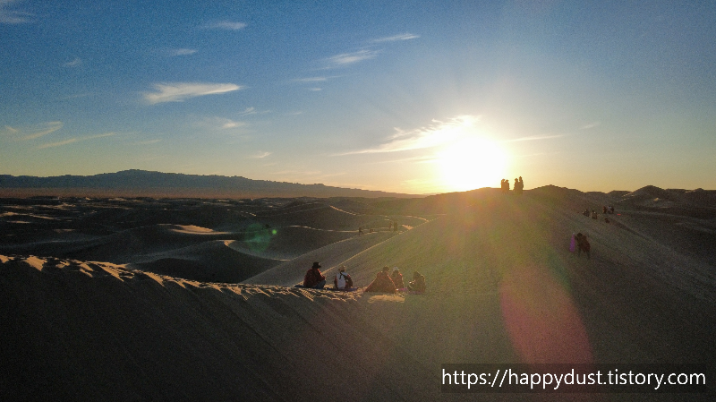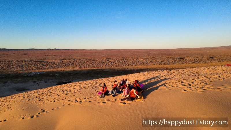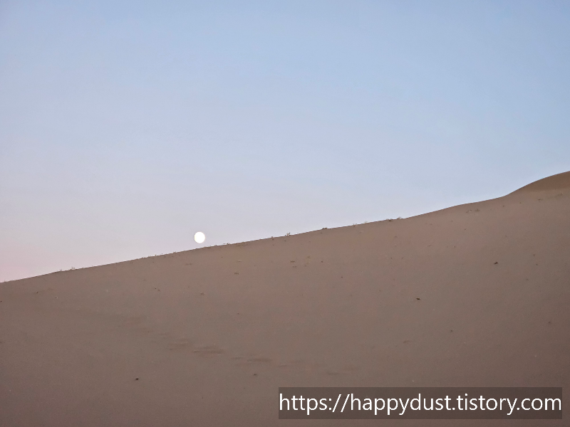 모래썰매 신나게 타고 내려오니 저녁이 되었다