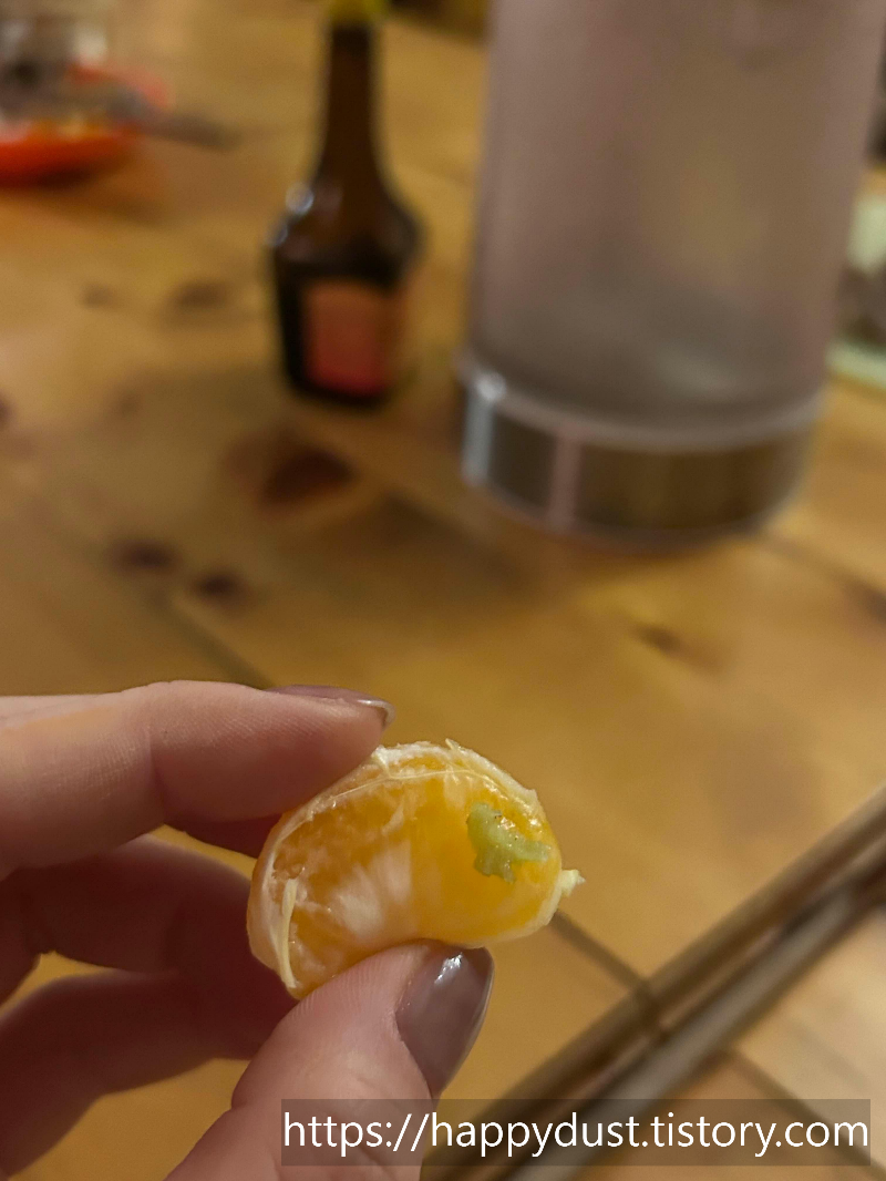 느끼한 콜라에 그치지않고 구운 귤에 와사비 얹어먹기.