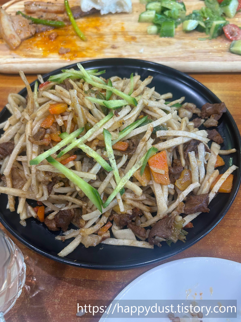 음식 안가리고 잘먹을 자신으로 몽골여행왔는데 평소 가벼운음식좋아인간에게 고기가 주인 식사는 쉽지않다