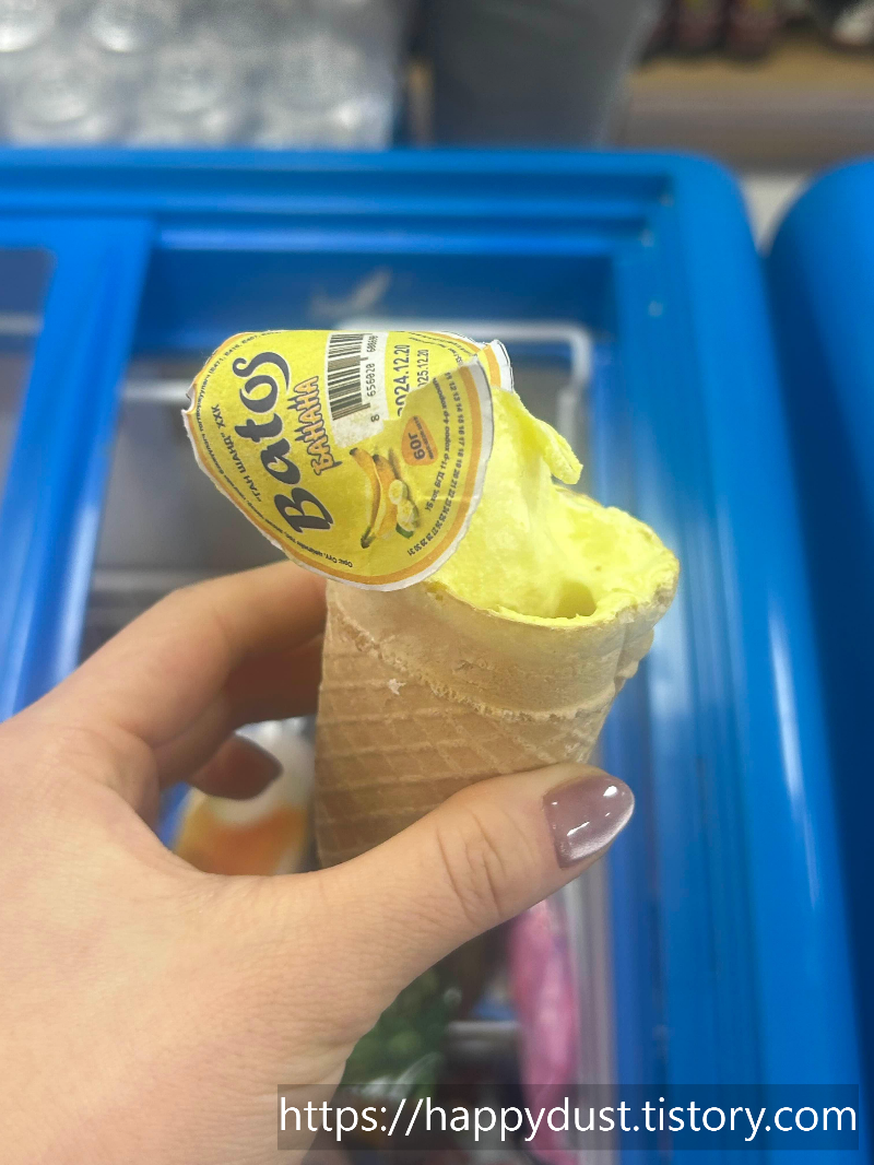 포장스티커가 바나나 쫀득아이스크림 낚아채서 콘까지 들고갈거같음