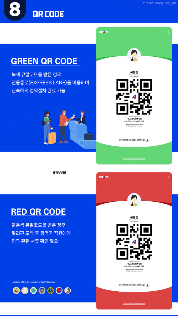 : 필리핀 도착 후 전용통로(Express Lane)를 이용하여 신속하게 검역절차 완료 가능