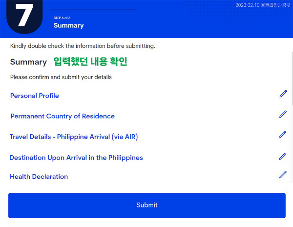 ⑦ STEP 6 of 6. Summary: 입력 내용 확인