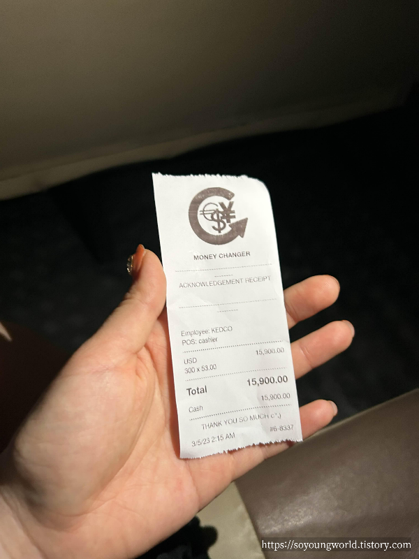 공항에서 2시쯤에 나와 공항 밖 환전소에서 환전하고 나온 시각이 오전 2시 20분이었는데