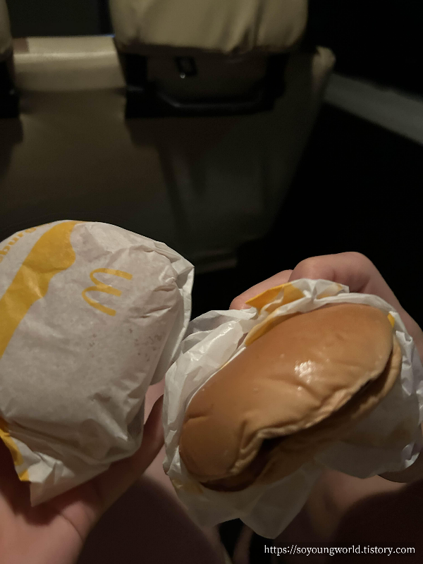 치즈버거가 되게 작고 내용물이 부실했지만 배고팠어서 맛있게 먹었다